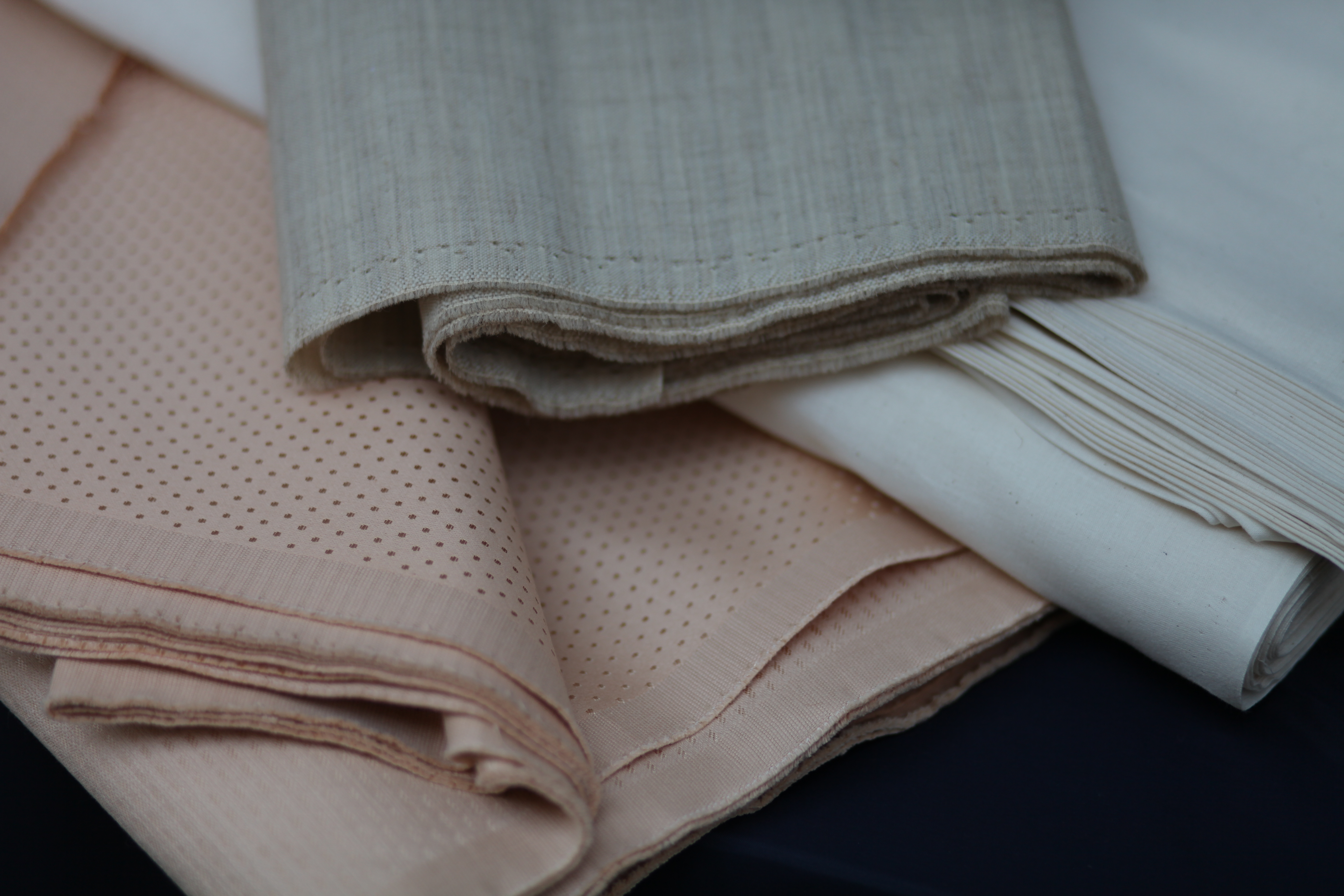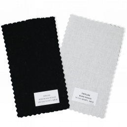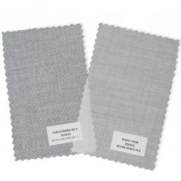 Toiles écru stabilisées ou non, disponibles de 45 g à 190 g, ainsi que toiles blanches ou noires : singalette, mousseline, percale, triplure, molleton…